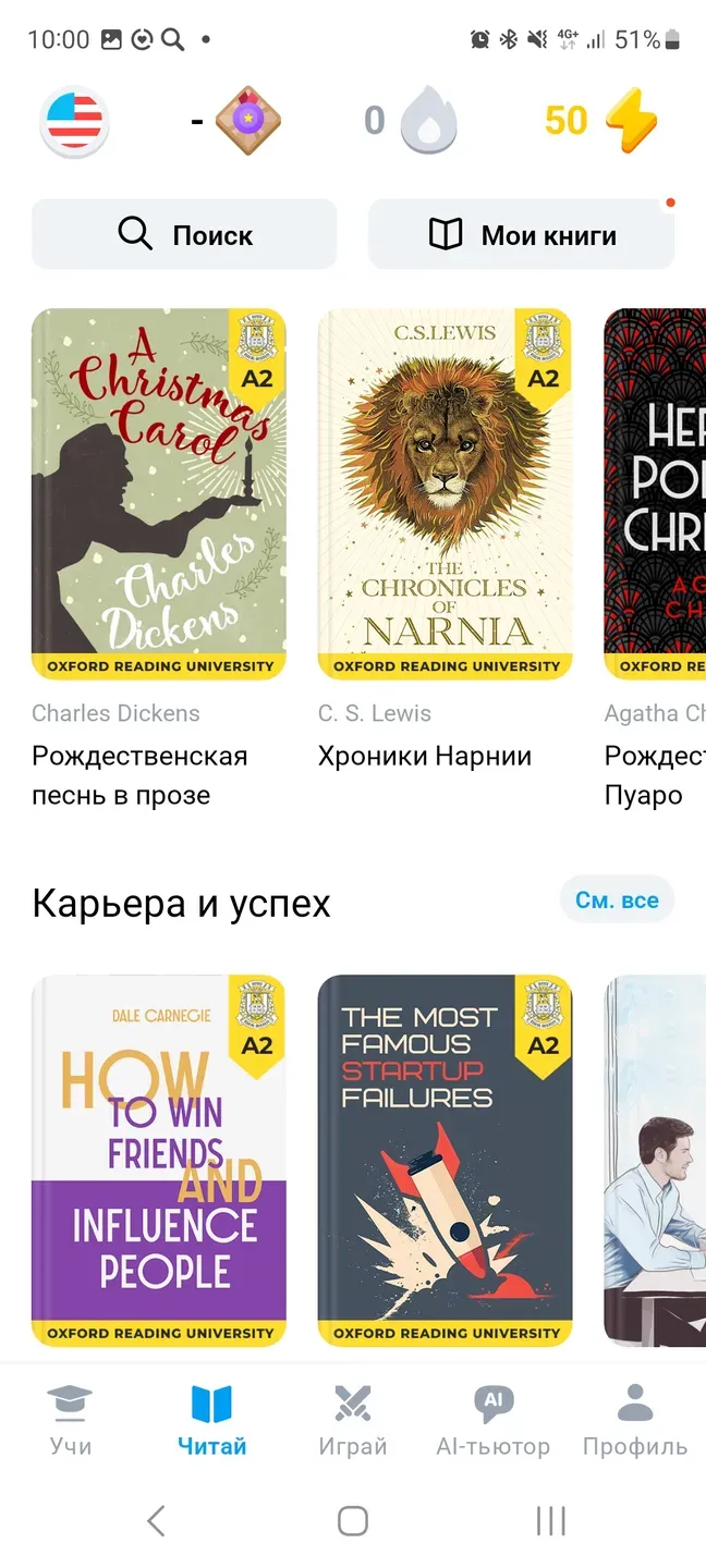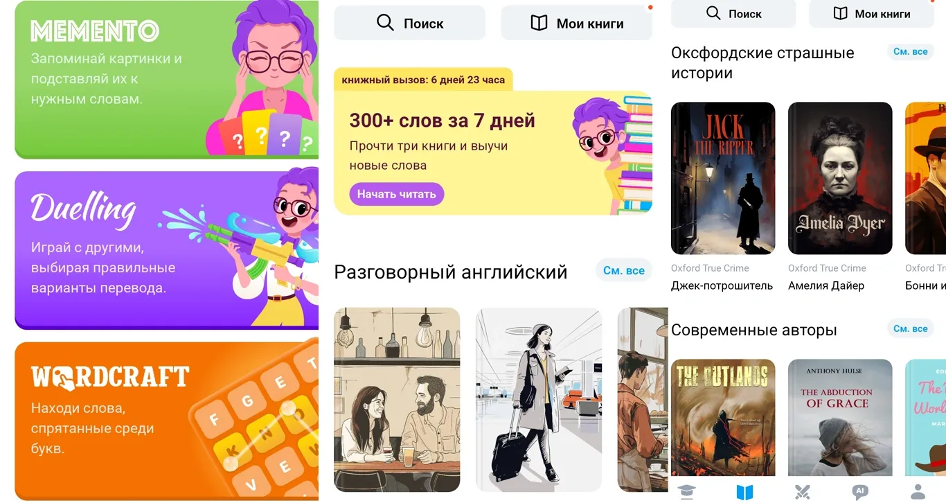 EWA имеет на борту тысячи книг разных жанров – от научных до художественных. Читайте книги на английском с одновременным переводом на родной язык и понимайте все написанное