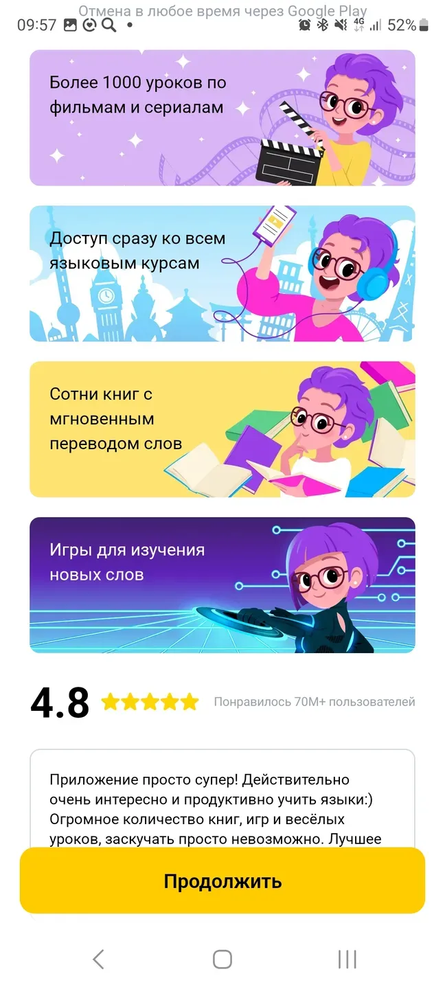 Для корректной работы приложения «EWA – изучение иностранных языков» требуется наличие устройства на платформе Android версии 9.0 или выше, а также не менее 174 Мб свободного места на устройстве. Кроме того, приложение запрашивает следующие разрешения: данные о подключении по Wi-Fi, микрофон