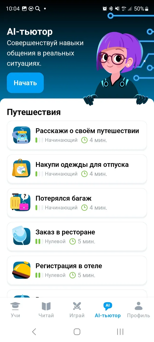 EWA поможет прокачать языковые навыки как для путешествий, так и для профессиональных целей - обучающие материалы включают в себя все необходимые тематические ключевые запросы